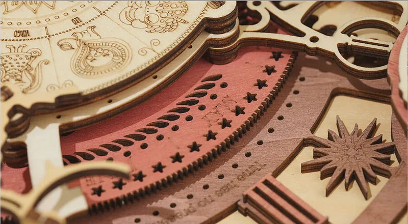 Le cadran, gravé de manière complexe des douze constellations du zodiaque, dégage une impression d'élégance rétro.