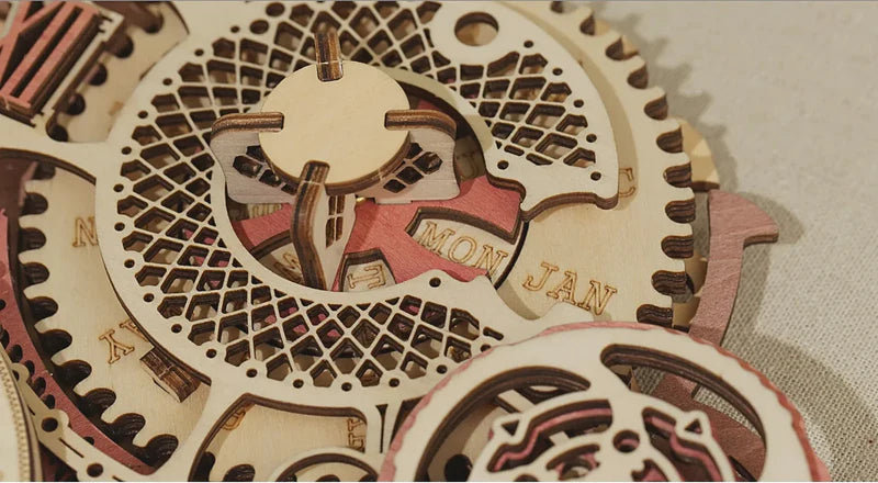 En tournant le bouton, on entend un "clic" en bois, ce qui favorise l'interactivité entre l'horloge murale et l'utilisateur.
