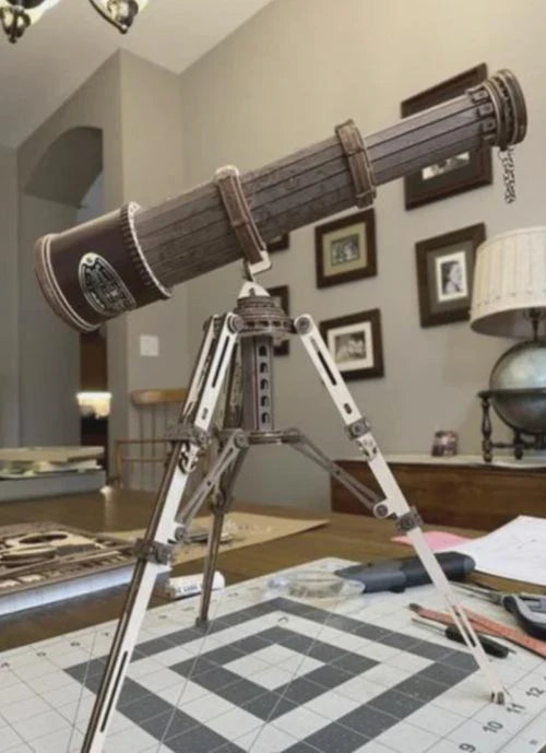 Doté d'une structure distincte, ce télescope rétro comprend un support extensible pour plus de fonctionnalité.