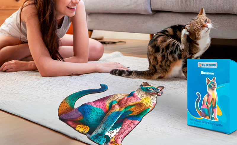 Plongez dans une vaste célébration de la beauté féline avec notre série de puzzles en bois, qui présente plus de 50 races de chats uniques du monde entier.