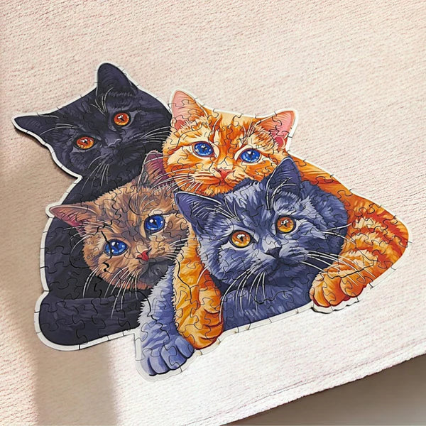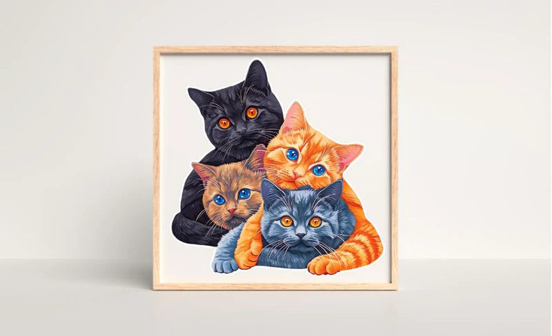 En complétant le puzzle, vous découvrirez d’innombrables formes de chats uniques représentant divers personnages de chats fascinants, tels que le chat qui prend un bain de soleil, le chat rêvant, le chat grognon, le chat qui dort, etc.