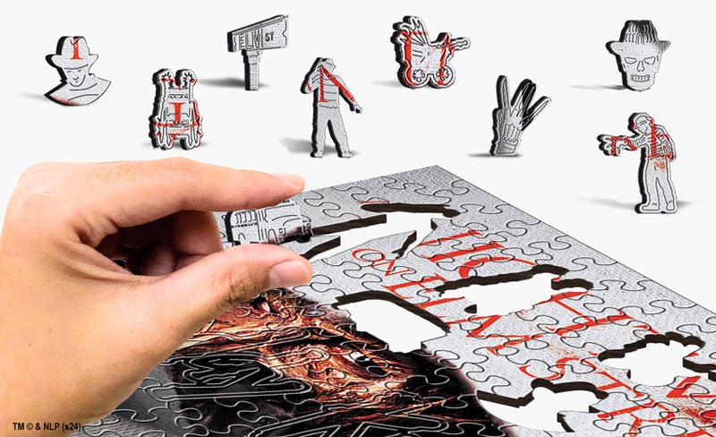 Avec chaque pièce, vous découvrirez progressivement les rues sinistres de Springwood, le gant aiguisé de Freddy Krueger et les scènes cauchemardesques qui brouillent la frontière entre les rêves et la réalité sur Elm Street.
