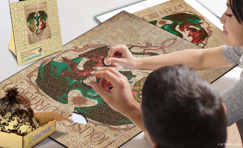 Présentant des œuvres d'art originales directement issues de la source cinématographique épique, cette série de puzzles célèbre l'union des visuels authentiques de 'La maison du Dragon' avec l'artisanat de puzzle de la plus haute qualité.