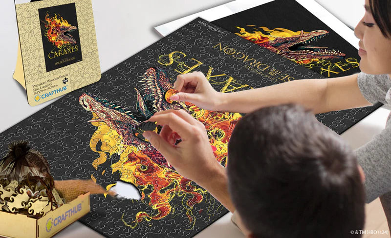 Présentant des œuvres d'art originales directement issues de la source cinématographique épique, cette série de puzzles célèbre l'union des visuels authentiques de 'La maison du Dragon' avec l'artisanat de puzzle de la plus haute qualité.