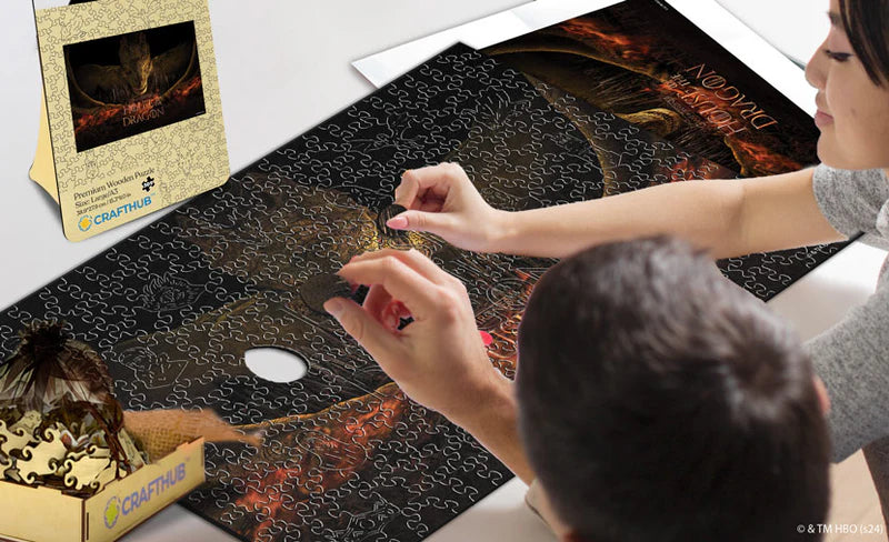 Présentant des œuvres d'art originales directement issues de la source cinématographique épique, cette série de puzzles célèbre l'union des visuels authentiques de 'La maison du Dragon' avec l'artisanat de puzzle de la plus haute qualité.