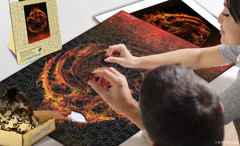 Présentant des œuvres d'art originales directement issues de la source cinématographique épique, cette série de puzzles célèbre l'union des visuels authentiques de 'La maison du Dragon' avec l'artisanat de puzzle de la plus haute qualité.