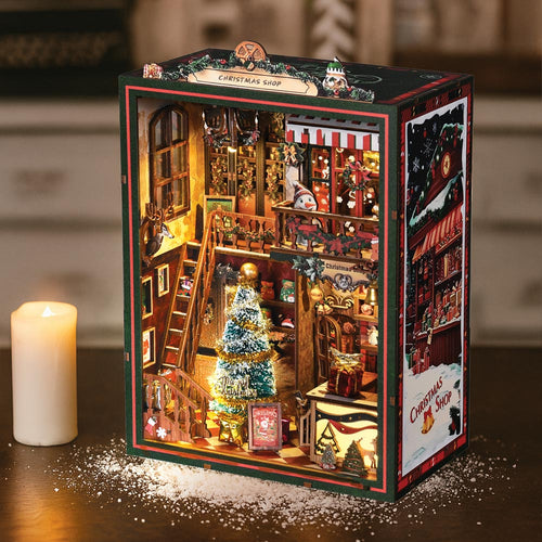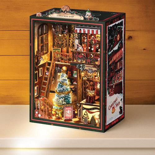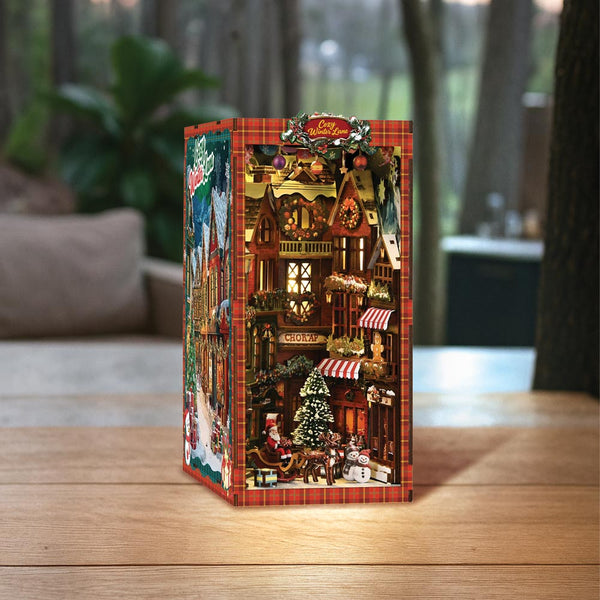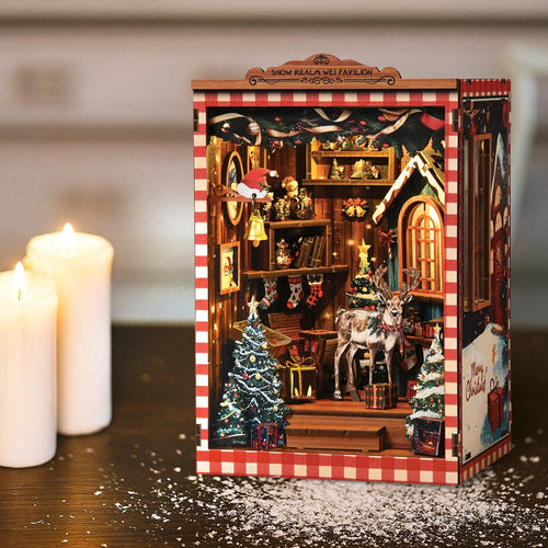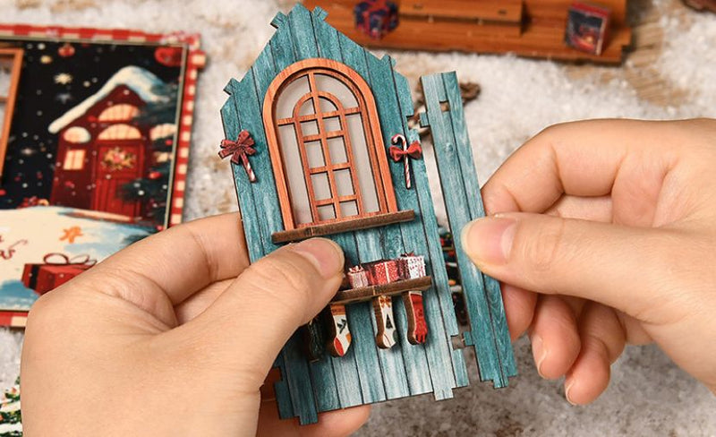 Créez votre propre refuge hivernal festif. Chaque pièce de bois prédécoupée s'emboîte parfaitement, vous guidant dans la création d'un charmant refuge de Noël — du cadre de fenêtre illuminé aux étagères remplies de trésors de saison.