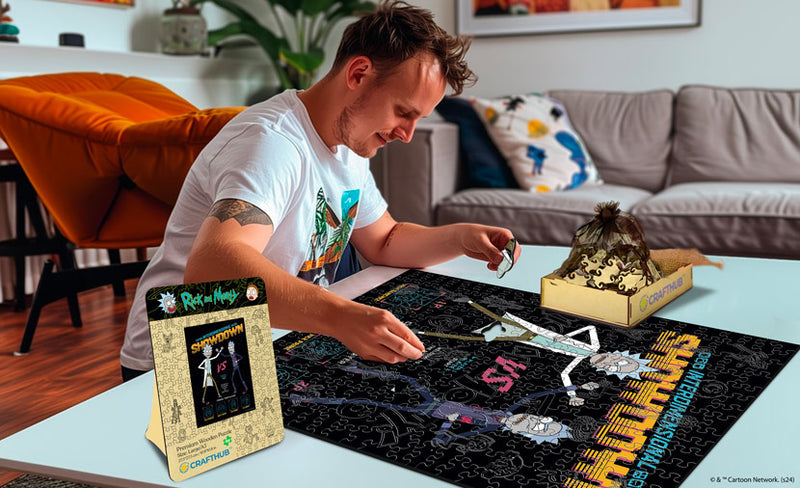 Fabriquée en bois de première qualité puis découpée au laser avec une précision de 0,3 mm, chaque pièce s'emboîte à merveille. Conçu pour ceux qui aiment le chaotique et le bizarre, tout comme les aventures de Rick et Morty.