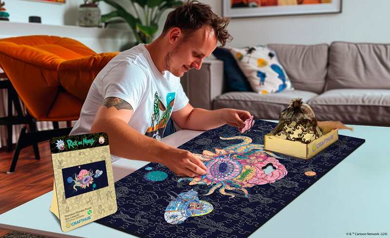 Fabriquée en bois de première qualité puis découpée au laser avec une précision de 0,3 mm, chaque pièce s'emboîte à merveille. Conçu pour ceux qui aiment le chaotique et le bizarre, tout comme les aventures de Rick et Morty.