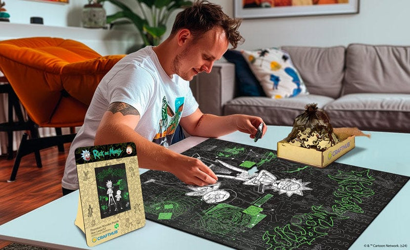Fabriquée en bois de première qualité puis découpée au laser avec une précision de 0,3 mm, chaque pièce s'emboîte à merveille. Conçu pour ceux qui aiment le chaotique et le bizarre, tout comme les aventures de Rick et Morty.