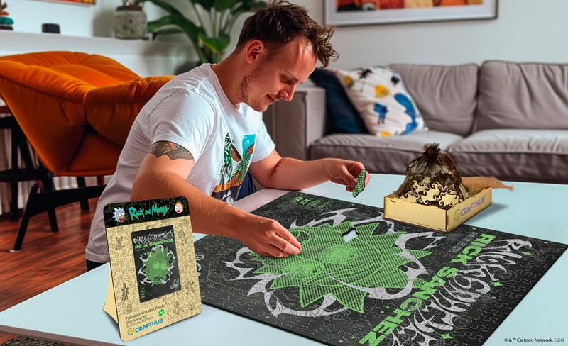 Fabriquée en bois de première qualité puis découpée au laser avec une précision de 0,3 mm, chaque pièce s'emboîte à merveille. Conçu pour ceux qui aiment le chaotique et le bizarre, tout comme les aventures de Rick et Morty.