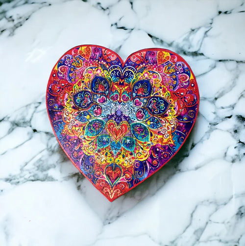 Le puzzle est un mélange envoûtant de design complexe et d'assemblage réfléchi. Chaque pièce s'emboîte parfaitement dans la suivante, créant un superbe motif de mandala à la fois apaisant et captivant.