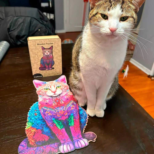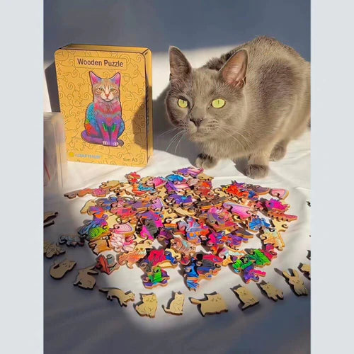 Ce puzzle est un gagnant. Ma femme l'a adoré - tant de jolies pièces de chat, les petits "extras" ici et là - tout lui a plu. Elle l'a assemblé et l'a laissé en évidence pendant un bon moment.