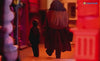 Hagrid et le jeune Harry entrent dans le Chemin de Traverse, capturant le moment où la magie se dévoile pour la première fois dans son monde.