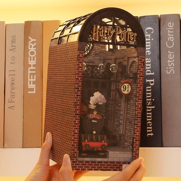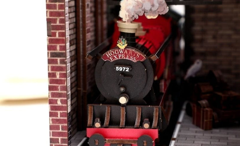 Ce coin lecture est conçu avec des détails complexes, des murs en briques réalistes à la locomotive miniature et à l'effet de fumée, rendant le moment de l'embarquement dans le Poudlard Express encore plus réel.