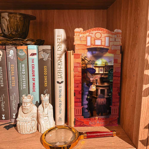 Passez sous l'arche en briques pour rejoindre le quai 9¾ et assistez à la magie en action. Ce coin lecture magnifiquement détaillé capture le moment emblématique où la locomotive à vapeur écarlate attend son voyage vers Poudlard, ce qui en fait un incontournable pour tous les fans du monde des sorciers.