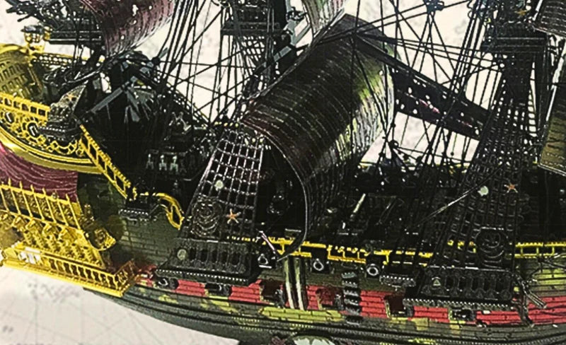 La rumeur veut que le Queen Anne's Revenge ait été chargé de richesses et de trésors. La maquette comprend des éléments tels que la coque imposante et les canons méticuleusement détaillés, garantissant une représentation authentique du formidable design du navire.