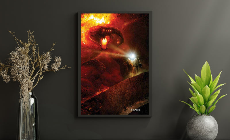 "Je suis le serviteur du Feu Secret, le porteur de la flamme d'Anor. Le feu sombre ne te servira de rien, flamme d'Udûn !" Plongez dans l'affrontement emblématique entre Gandalf et le Balrog sur le Pont de Khazad-dûm.